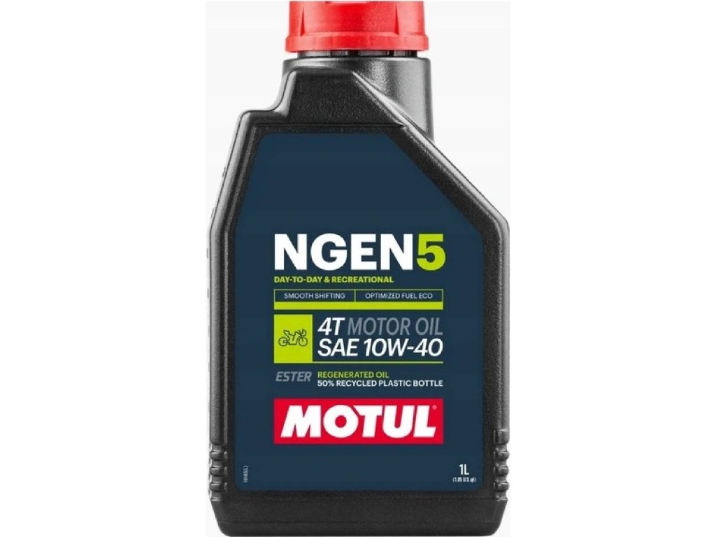 Motul NGEN 5 10W-40 4T je motorový olej určený pro širokou škálu motocyklů se 4-taktním motorem. Tento olej je vhodný jak pro silniční, tak i terénní motocykly. Lze jej použít u motocyklů s integrovanou převodovkou i bez ní, a to jak s mokrou, tak suchou spojkou.