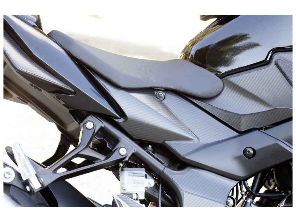 Sada dekoračních polepů na motocykl Suzuki GSR 750. Barva imitace karbonu matná. 10-dílná sada (5xvlevo, 5xvpravo), na zadní a podsedlové plasty a nádrž.